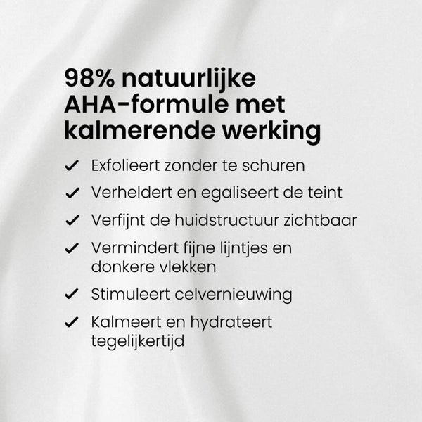 AHA maakt de huid gevoeliger voor zonlicht dus gebruik dagelijks een SPF 30 of hoger, óók bij bewolkt weer.